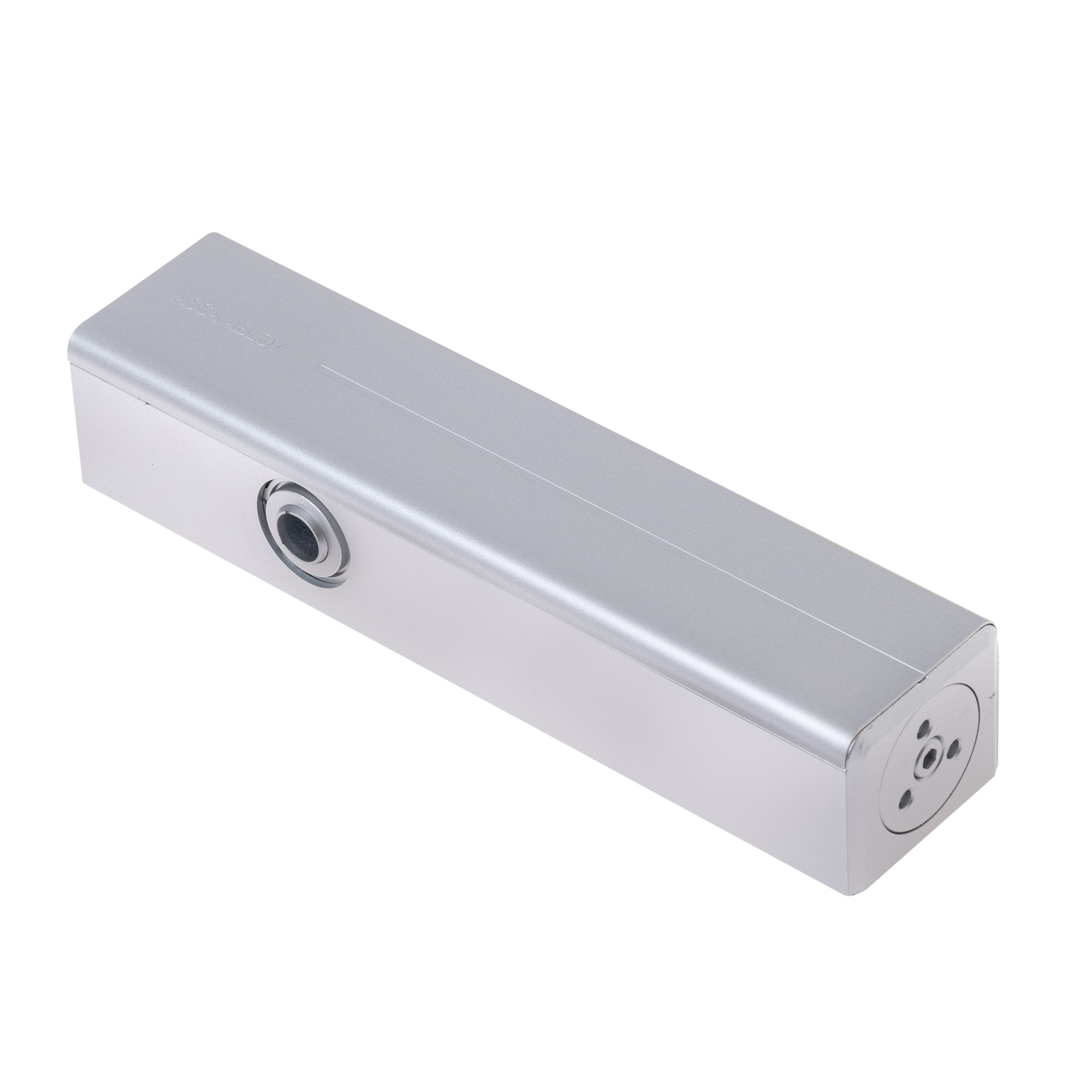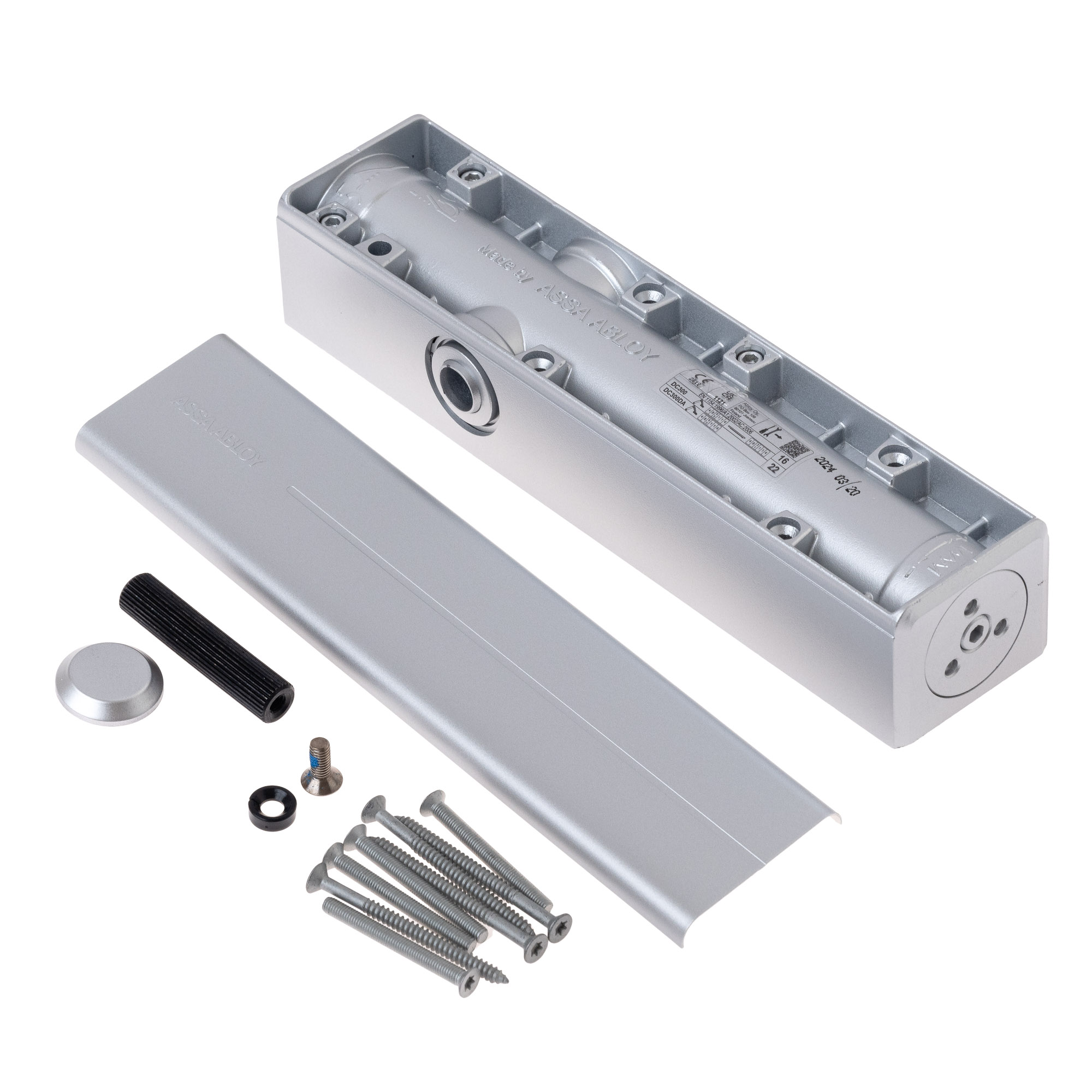 Amortizorul cu cremalieră și roată dințată DC300 este o soluție funcțională și universală pentru orice ușă. Designul său modern și compact, cu o gamă variată de finisaje, este atât elegant, cât și durabil și se integrează perfect în orice mediu. Cu DC300, ușile se deschid confortabil și se închid în siguranță. Este certificat în conformitate cu EN1154, EN3-6 (60-120kg) cu braț standard și EN1-3 (20-60Kg) cu șină glisantă (fără braț) pentru ușile rezistente la incendiu și fum (cu excepția brațului cu opritor), pentru uşile într-un singur canat cu o lăţime de până la 1400mm (braț standard) /950mm (șina glisantă), trecere liberă conform DIN 18040 (lățime maximă a foii 1250mm) și CEN/TR 15894.Potrivit pentru uşile pe stânga sau dreapta, montare pe ușă sau pe toc. Reglabil pe înălțime, axul canelat (14 mm) compensează greșelile de instalare sau limitările de spațiu. Viteza de închidere și viteza de apropiere ajustabile continuu.Valvele frontale durabile de metal, fac reglajele ușoare și fiabile. Performanță constantă în orice interval de temperatură. Funcționalitatea Backcheck standard protejează tocul și zonele înconjurătoare (excepție pentru instalarea brațului paralel).Închiderea întârziată opțională permite unui utilizator mai mult timp să treacă prin ușă .Finisaj argintiu.