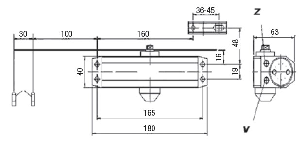 Amortizor cu functie de blocare la 90° pentru usi de 40-65kg si latime de 900mm, Corp monobloc din zamac cu brat din otel si arc din otel special in baie de ulei. Supape de control independente cu dispozitiv termostatic si supapa de suprasarcina ( pentru siguranta). Forta 2 pentru inchidere, blocare de la 15° la 180° cu reglarea supapei speciale. Amortizorul se livreaza cu surubul de fixare si instructiuni pentru montaj. Finisaj argintiu
