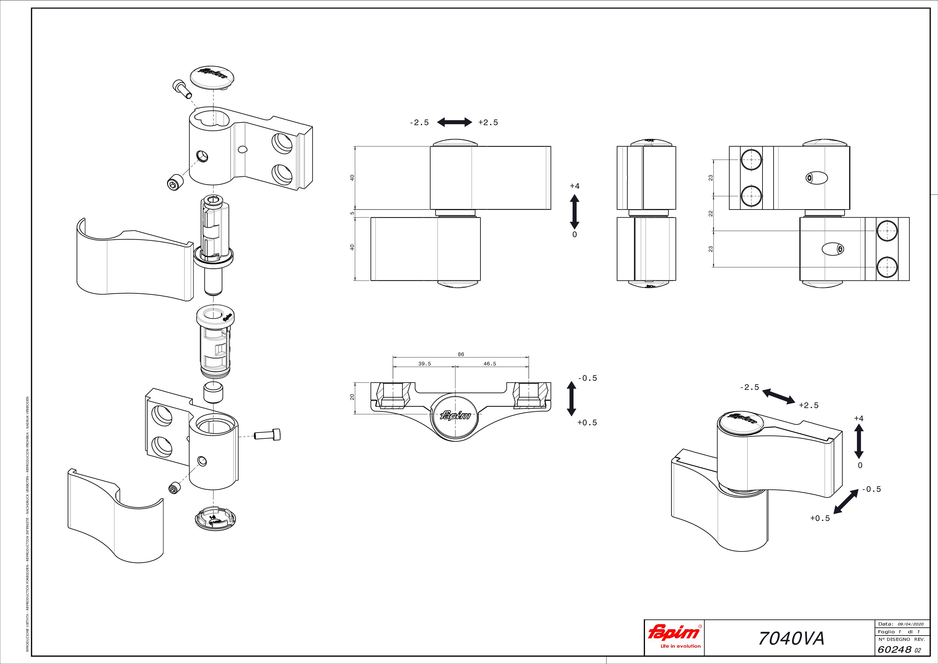 Balama Loira 2 aripi interax prindere 86 mm, alb lucios, h ax 20mm, reglaj tridimensional, greutate ușă max. 160kg