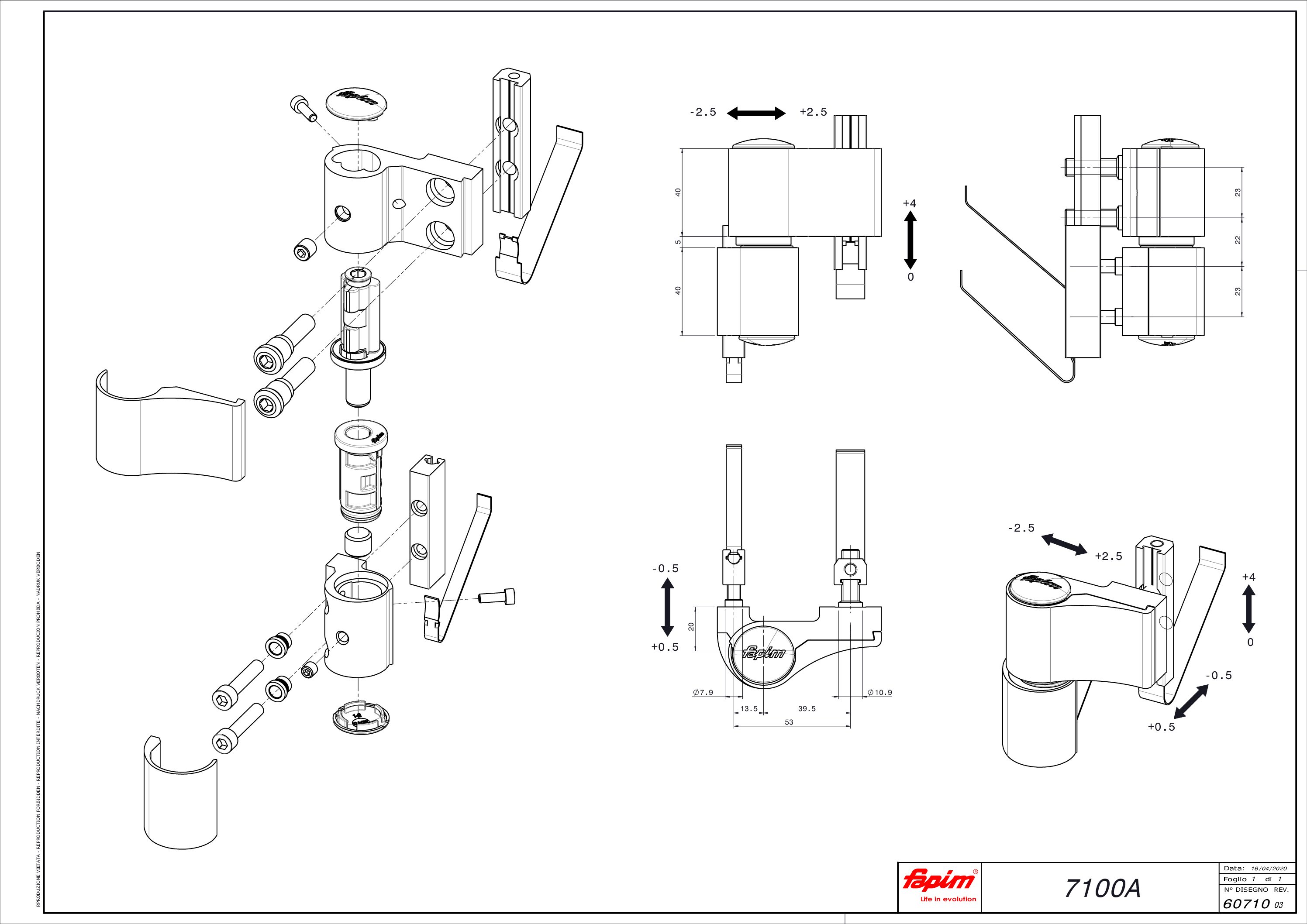 Balama aplicată, 2 aripi, interax 53mm, cu kit fixare, argintiu anodizat, Fapim 7100A