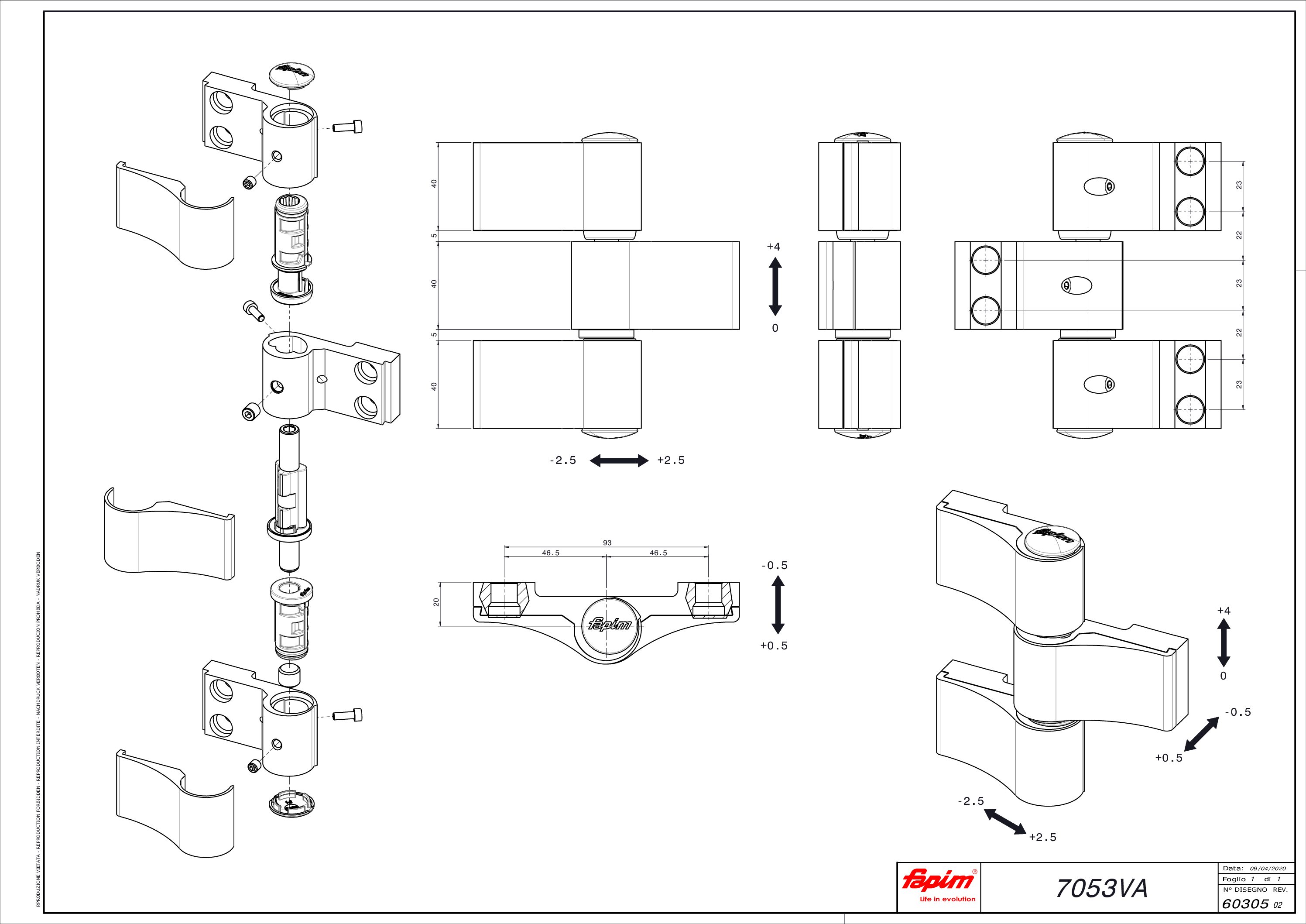 Balama Loira 3 aripi interax prindere 93 mm, alb lucios, h ax 20mm, reglaj tridimensional, greutate ușă max. 160kg