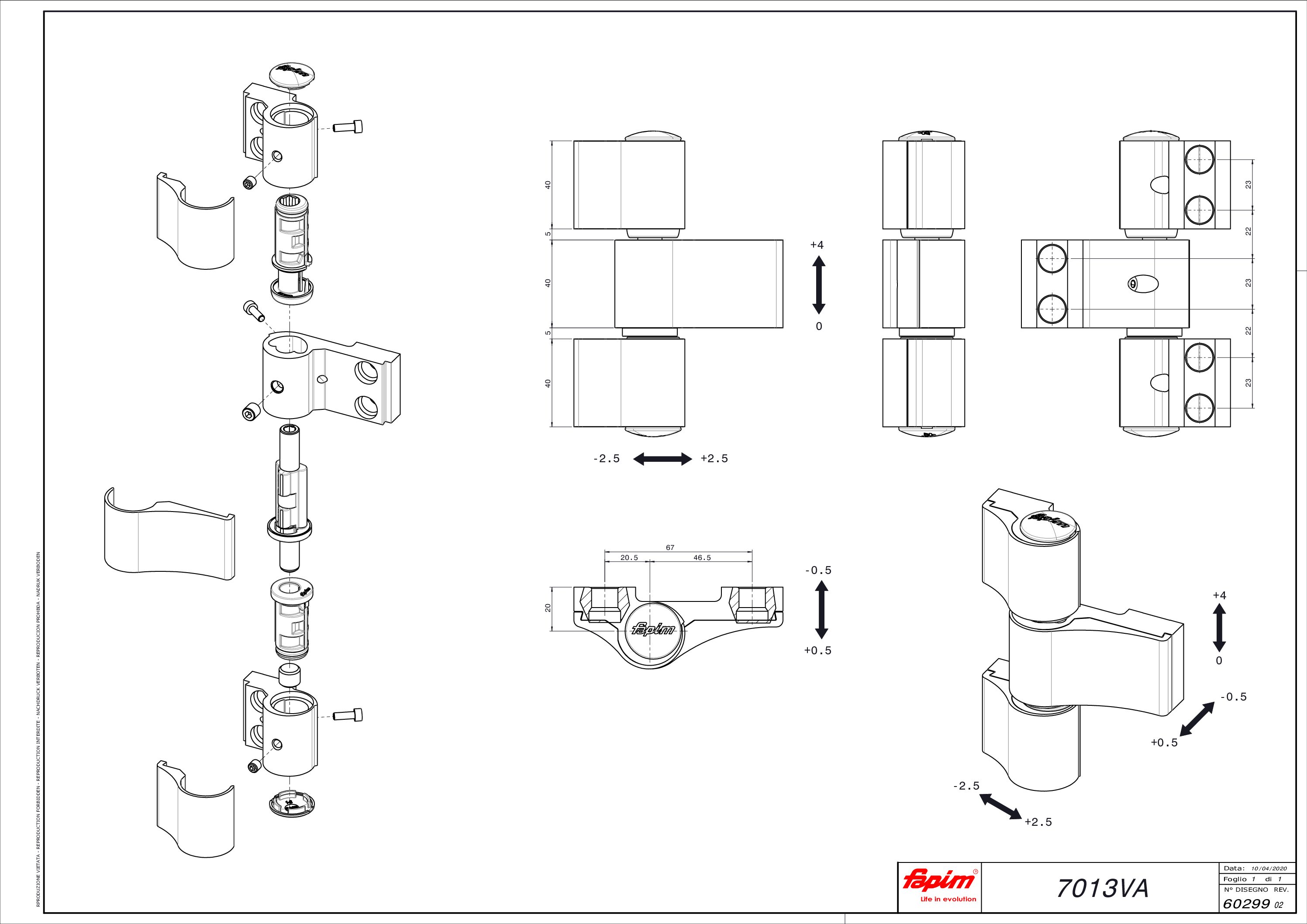 Balama Loira 3 aripi interax prindere 67 mm, alb lucios, h ax 20mm, reglaj tridimensional, greutate ușă max. 160kg