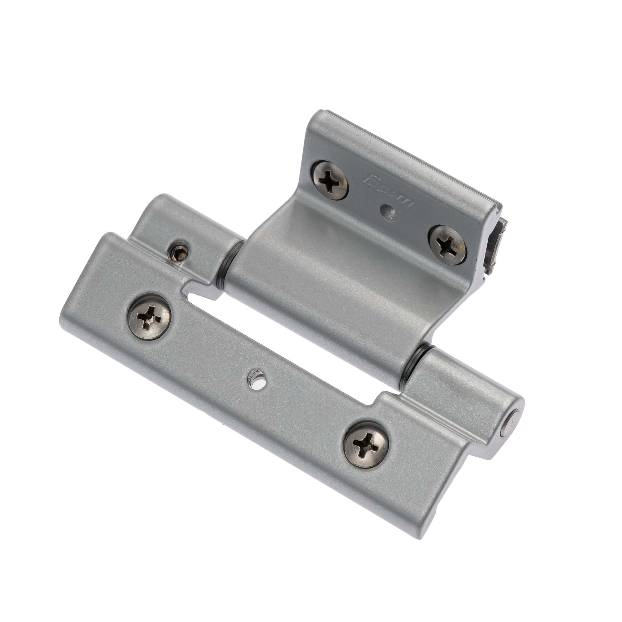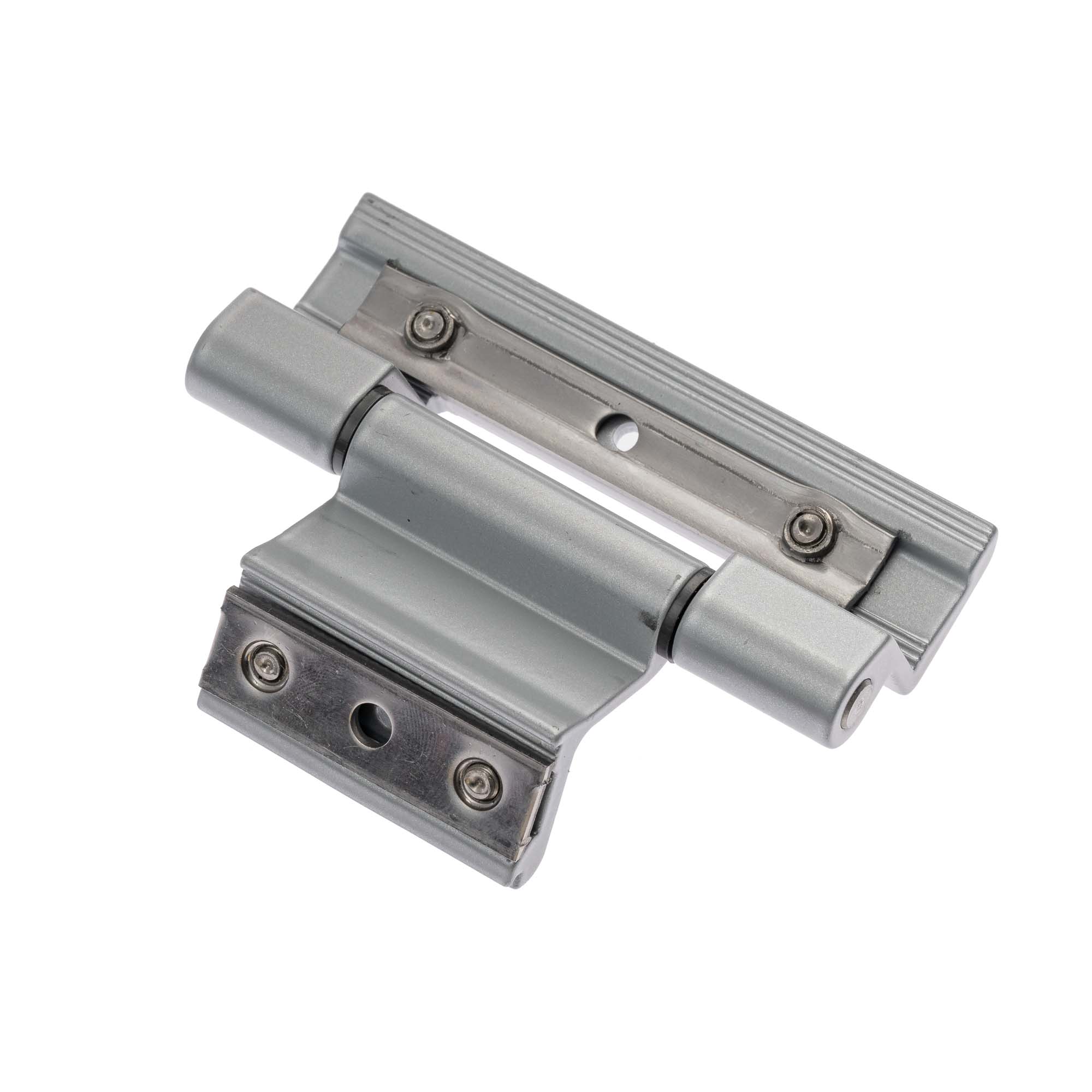 Balama triplă, rapidă, premontată, ARGINTIU SEMI LUCIOS cu bolt și plăcuțe fixare din inox, pentru profile cu cameră europeană 21 mm