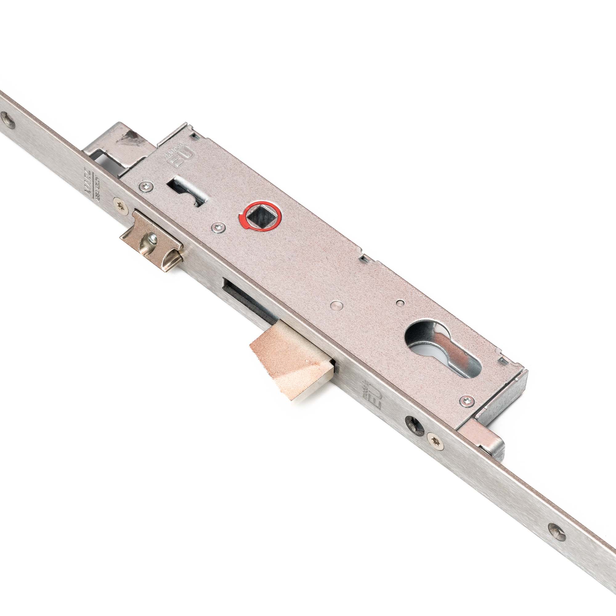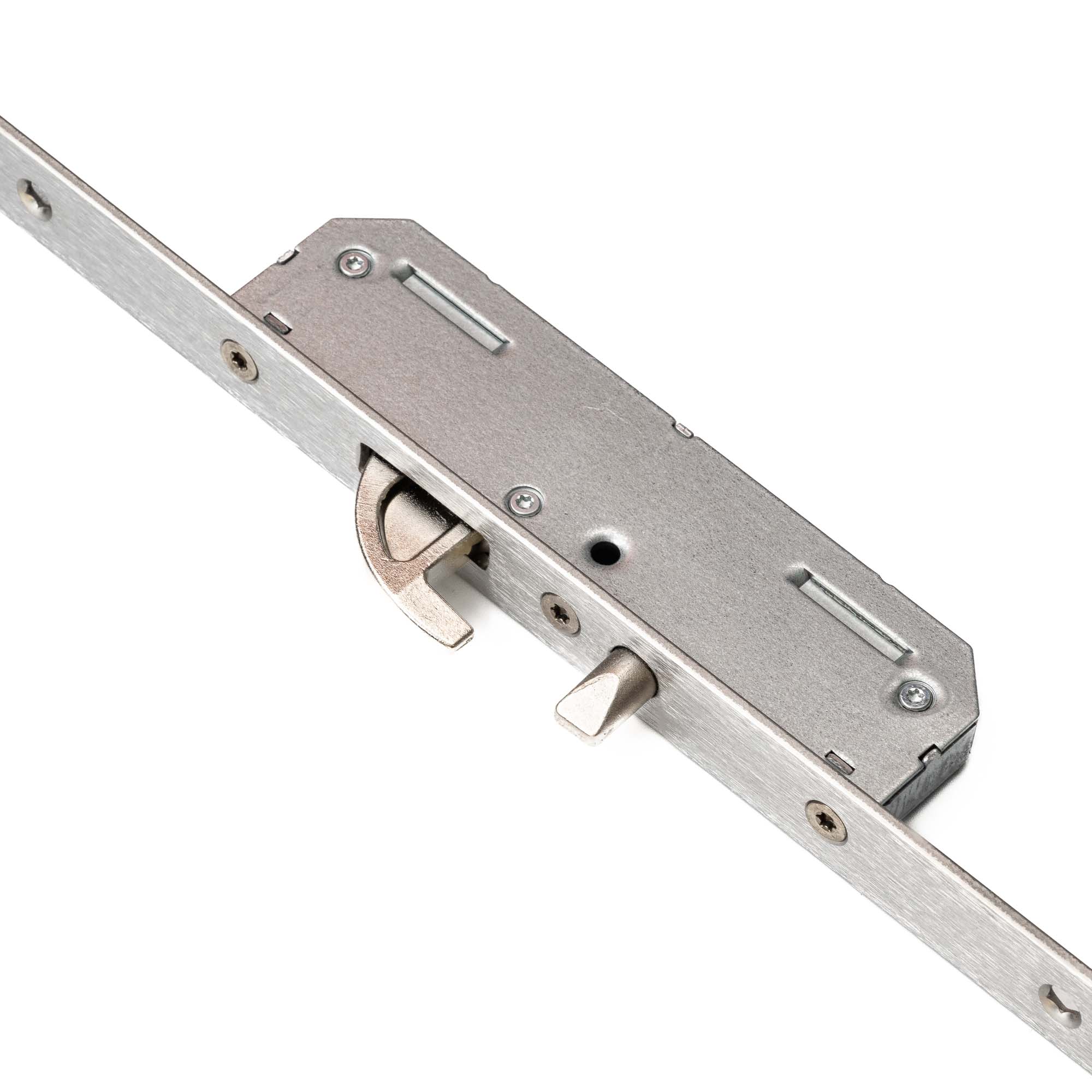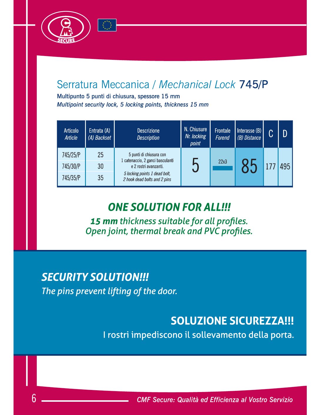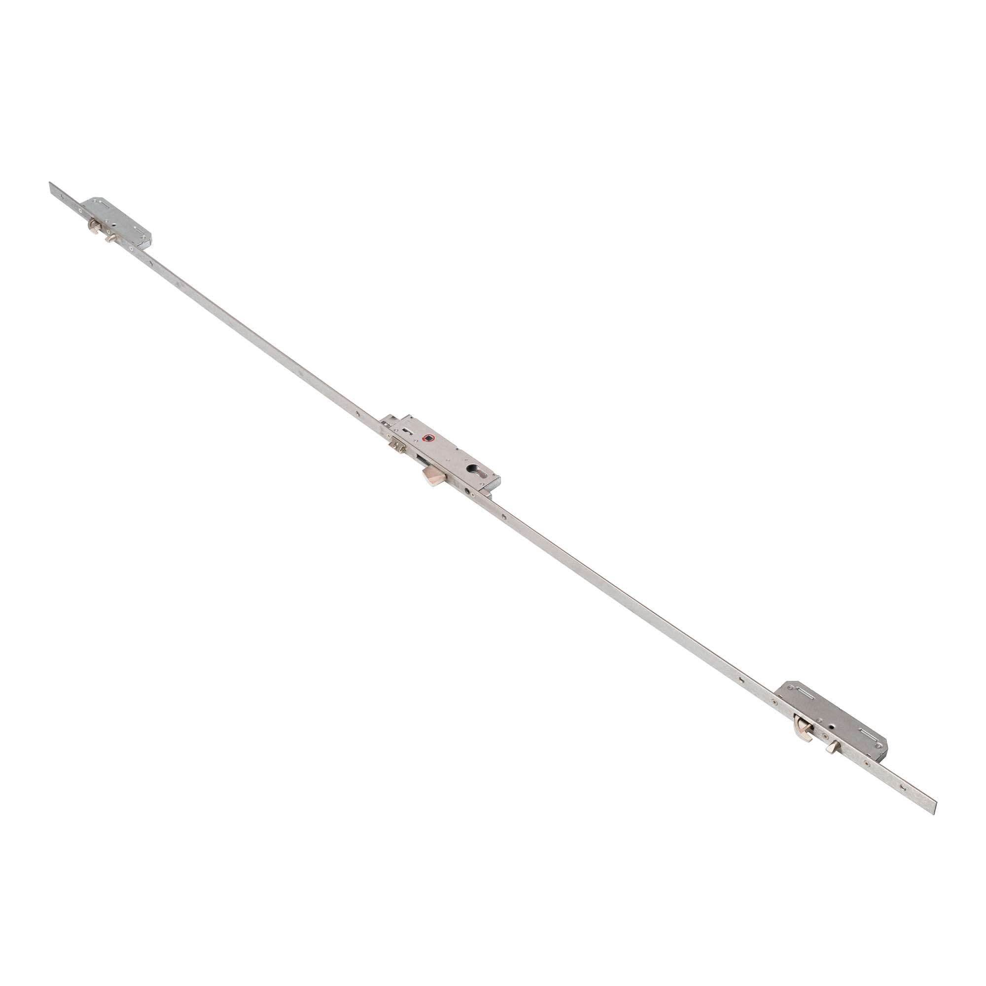 Broască cu limbă și zăvor basculant în 5 puncte de închidere, zăvor central, 2 zăvoare basculante agățătoare și două semi-zăvoare, placă frontală plată de 22mm, lățime corp 15mm, interax 85mm, ax cilindru 30mm, limbă reversibilă și reglabilă din oțel inox, înaltime 1700mm, configurată pentru cilindru european sagomat, de siguranță cf normă EN 15685. Poate fi montată și pe profile din PVC.