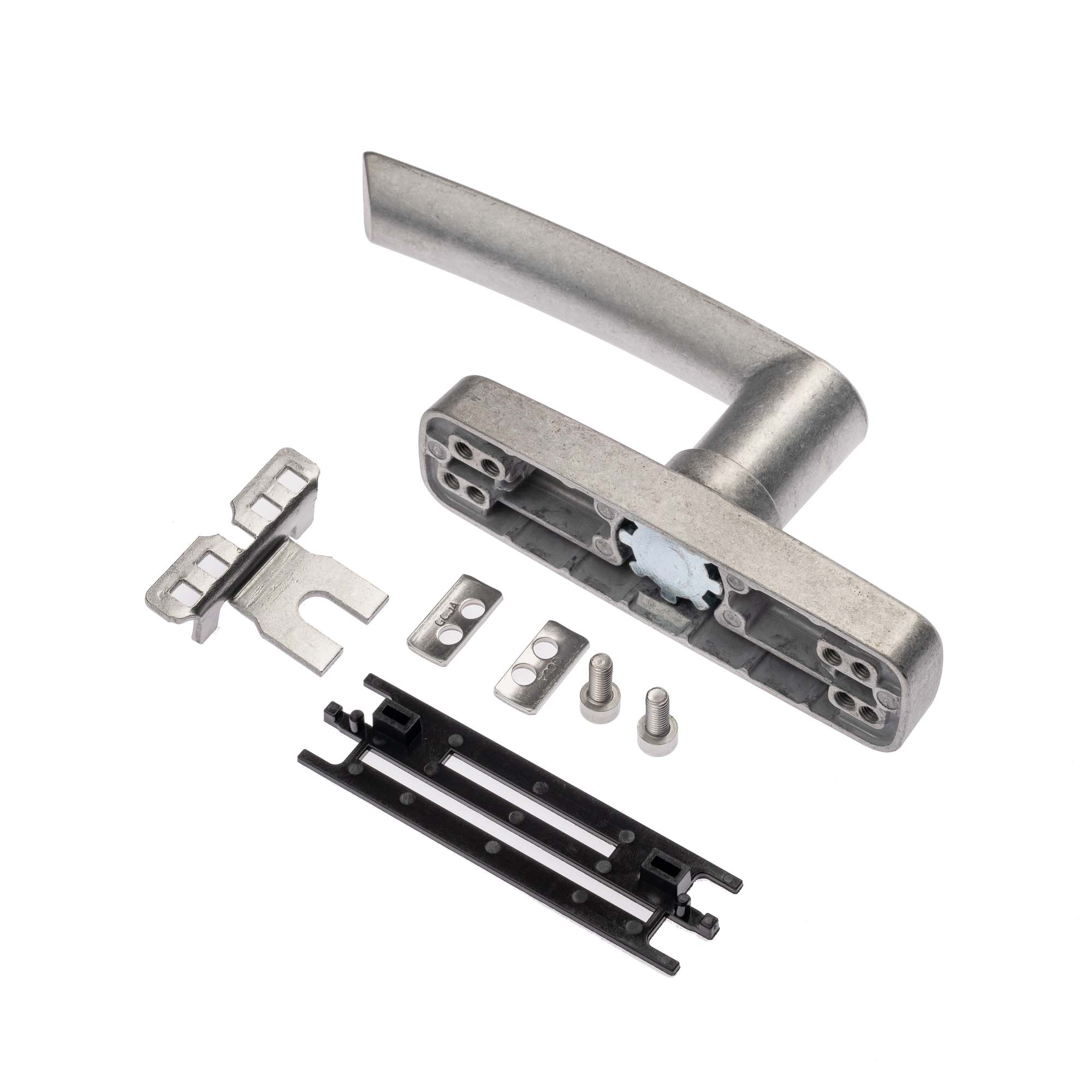 Cremon cu o singură furcă pentru fereastră cu dublă deschidere, pregătit pentru vopsire, interax prindere 84, 92, 98, 104 mm, reversibil