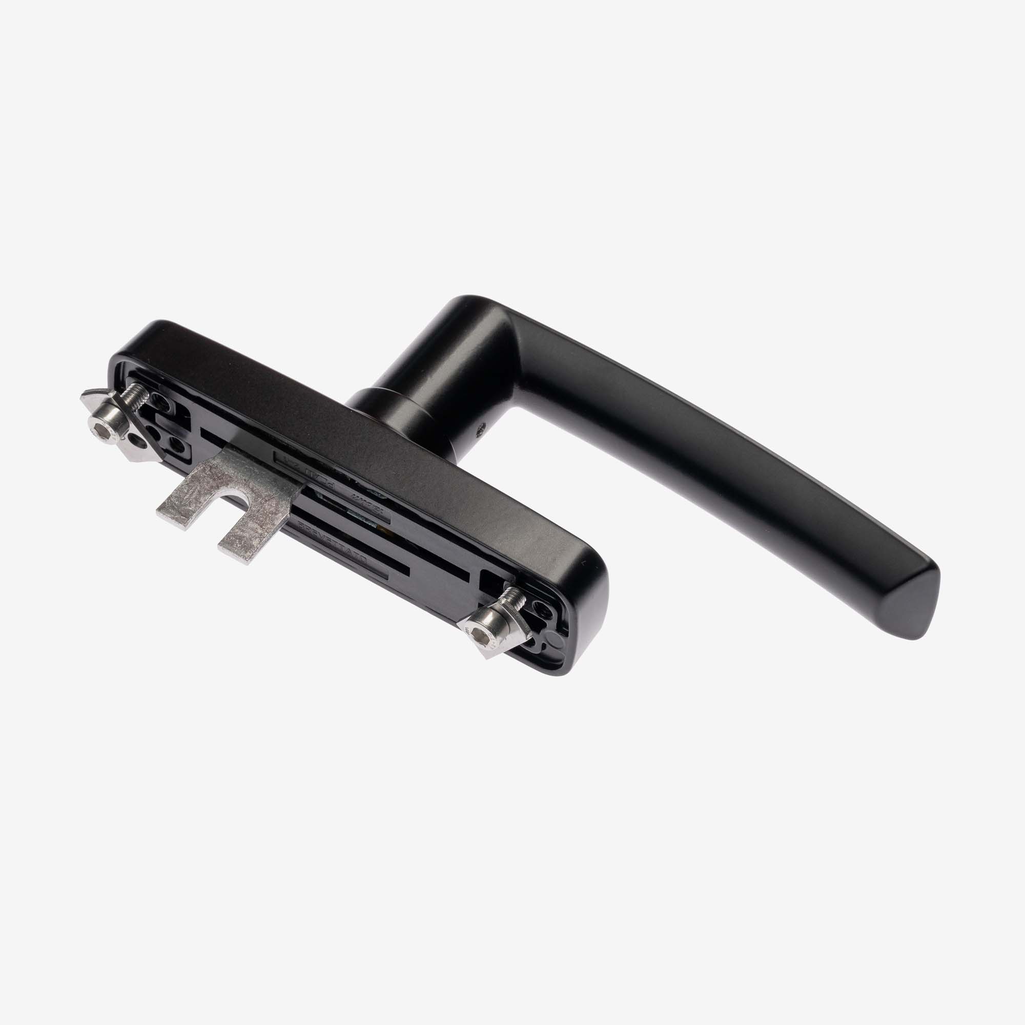 Cremon cu o singură furcă pentru fereastră cu dublă deschidere, negru mat, interax prindere 84, 92, 98, 104 mm, reversibil