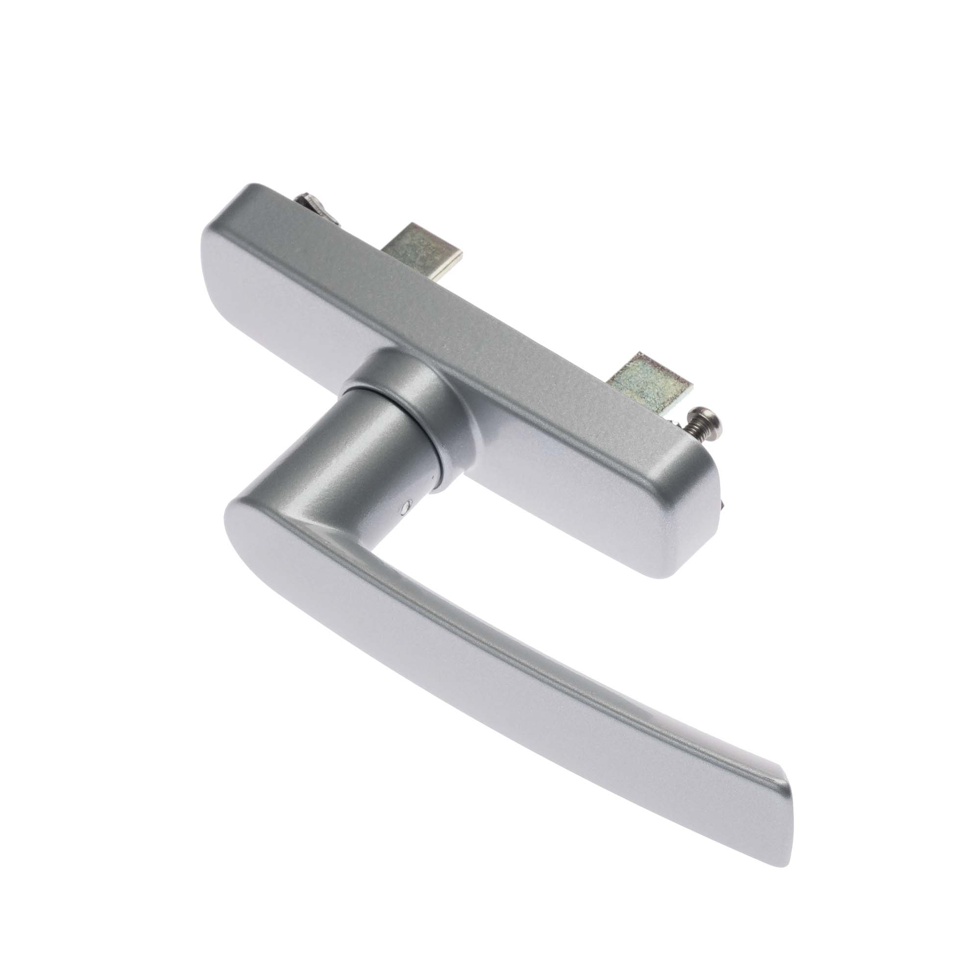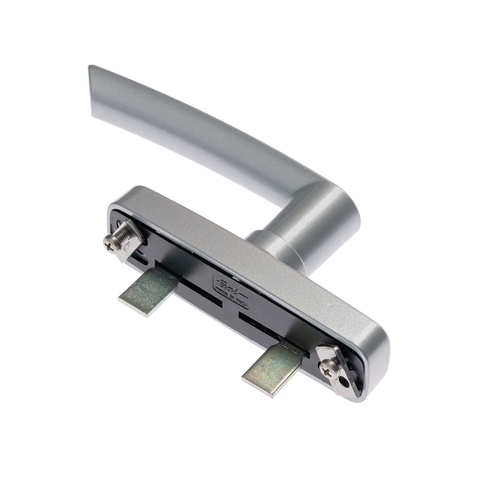 Cremon cu furcă dublă pentru fereastră simplă deschidere, argintiu semi lucios, interax prindere 84, 92, 98, 104 mm, reversibil