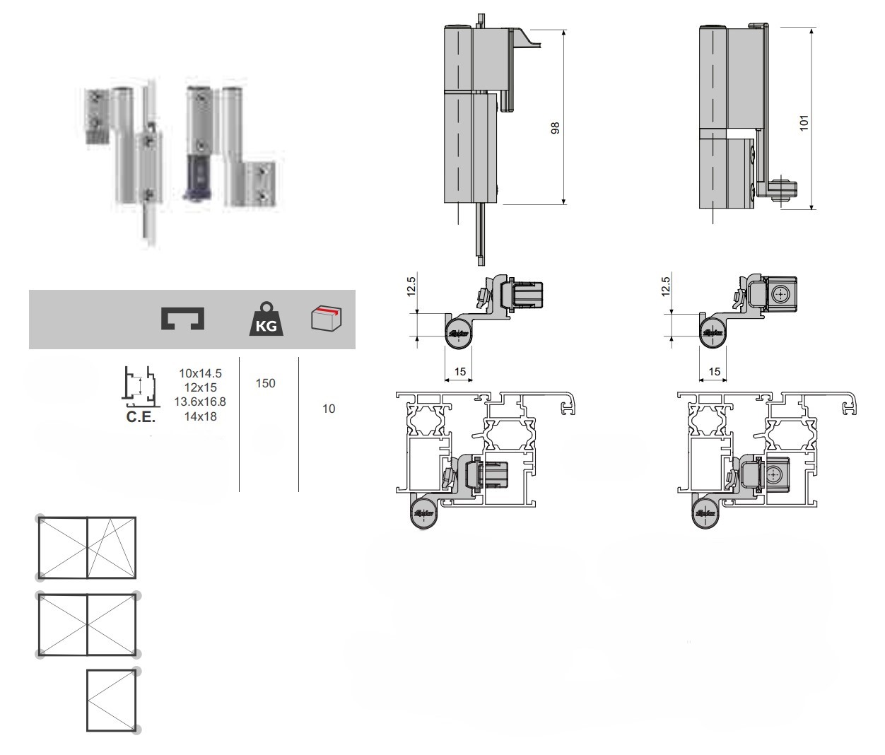 Set de 2 balamale GALICUBE, NEGRU MAT, reversibile pentru ferestre cu simplă deschidere, capacitate 150kg, reglaj orizontal +/-1mm, vertical -1,+2mm, cameră europeană 21 mm.