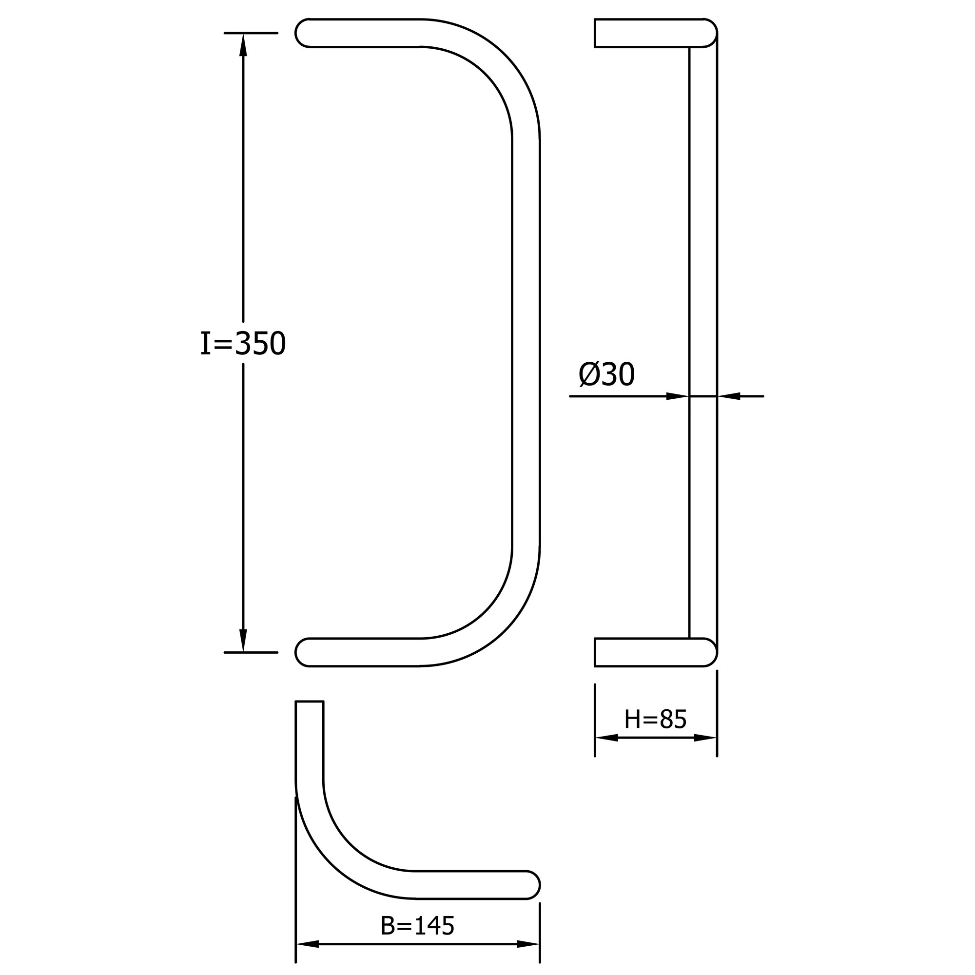 Toate mânerele din aceasta serie, sunt produse din aluminiu și se caracterizează prin ușurință dar și o rezistență ridicată la coroziune și agenți atmosferici. Datorită unei game largi de elemente de fixare, toate aceste mânere pot fi instalate cu ușurință pe orice tip de ușă: aluminiu, PVC, lemn, sticlă etc. Negru Al, D30mm x I350mm.