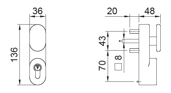 Mâner exterior tip buton acționare mecanism antipanică, cu cilindru, Antipanic 1090P