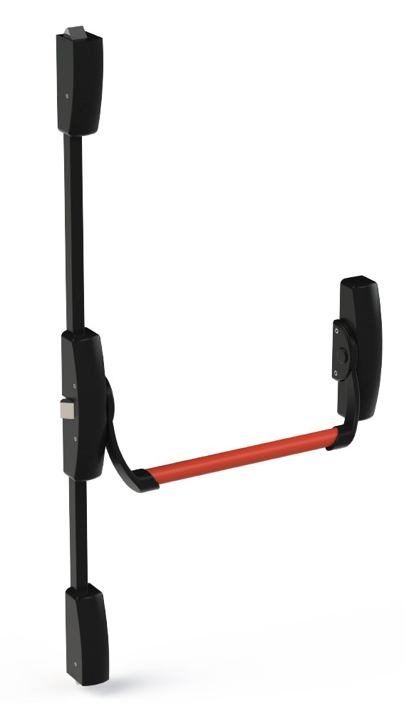 Mecanism antipanică în 3 puncte, sus, jos vertical, central lateral, inclusiv bara, finisaj negru/roșu, H 1030+1490 mm, Antipanic Unico 503