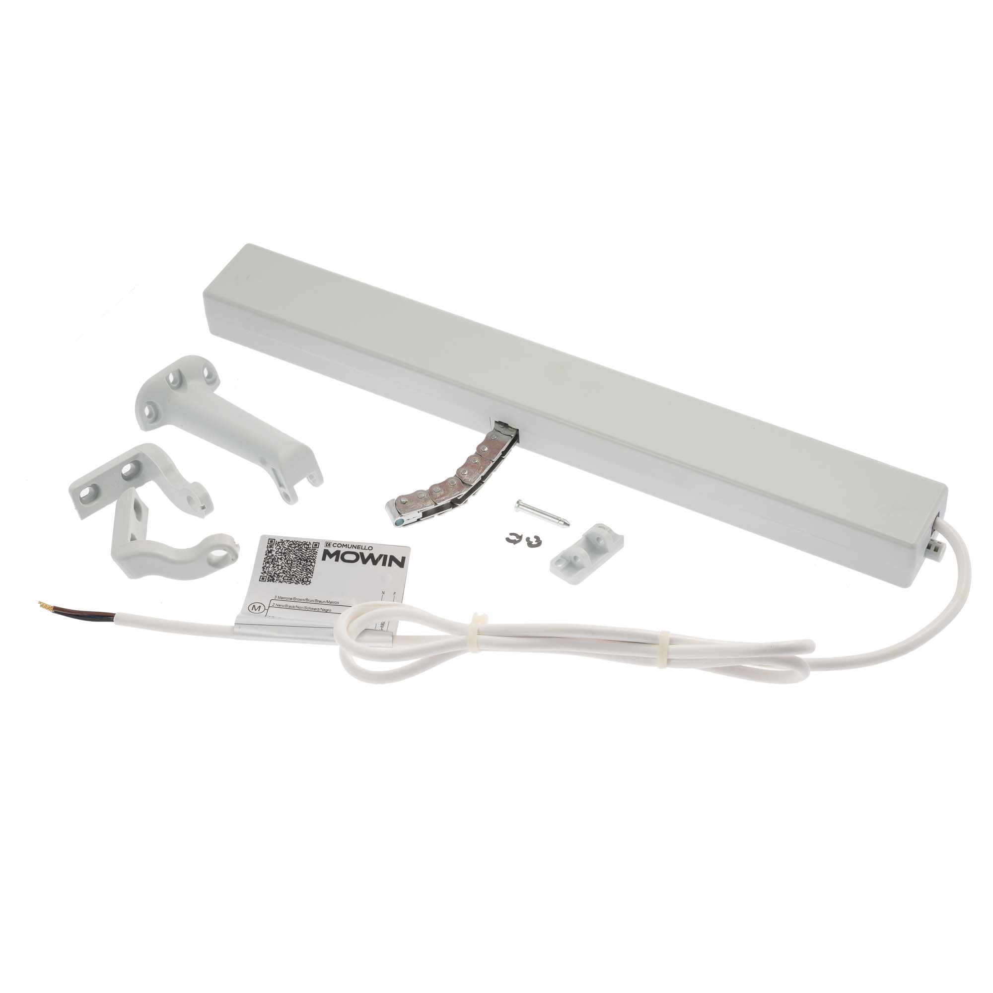 Motor electric cu lant pentru actionare ferestre, set accesorii incluse, STAR 25-230V, cursa 100, 150, 200, 250, 300, 380mm, 250N, 230V, gri. Comunello MT25 S VN NW 38H 0G 00 Z