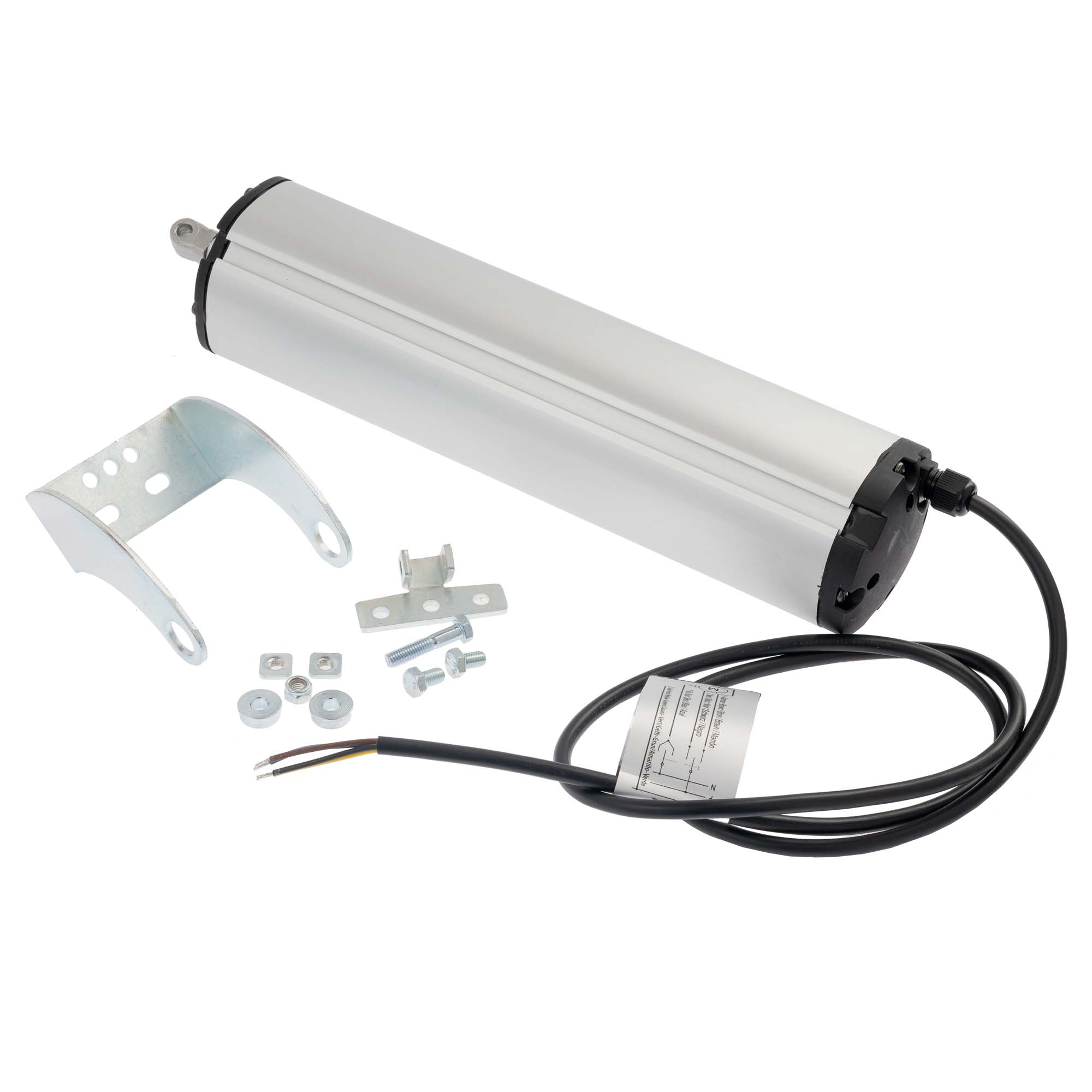 Motor electric cu piston pentru acționarea ferestrelor tip ,,trapă”, FAST50, accesorii de fixare incluse, cursa 200mm, 500N, 230V/170W, Argintiu.