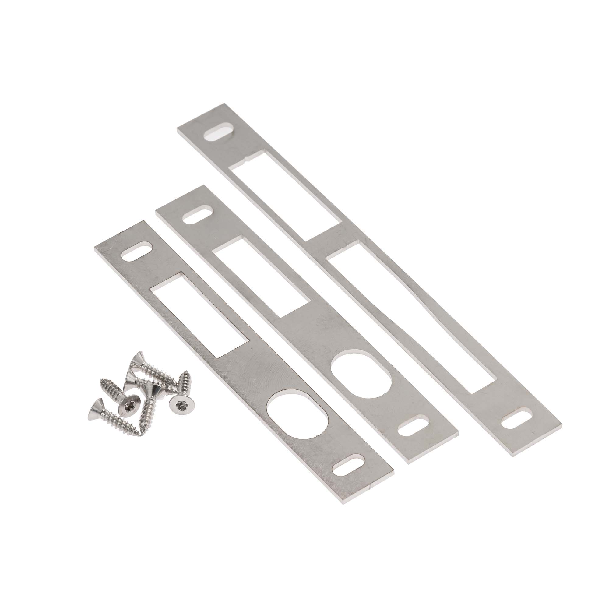 Set contraplaci broască 5 pct seria 745 pentru zăvor basculant, lățime central 18mm, lățime laterale 18mm, reglabilă pe orizontală 5mm, oțel inox