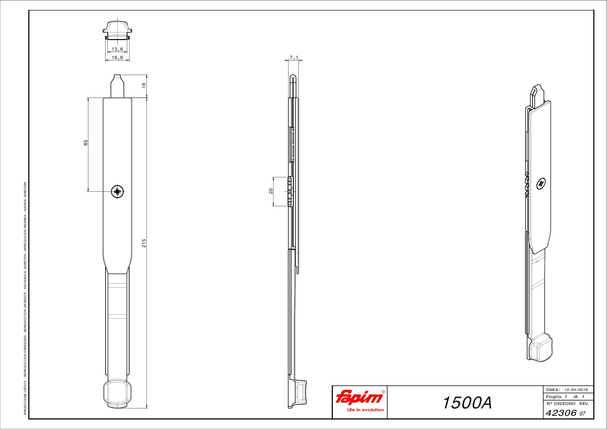 Zăvor canat secundar simplă sau dublă deschidere, Fapim 1500A