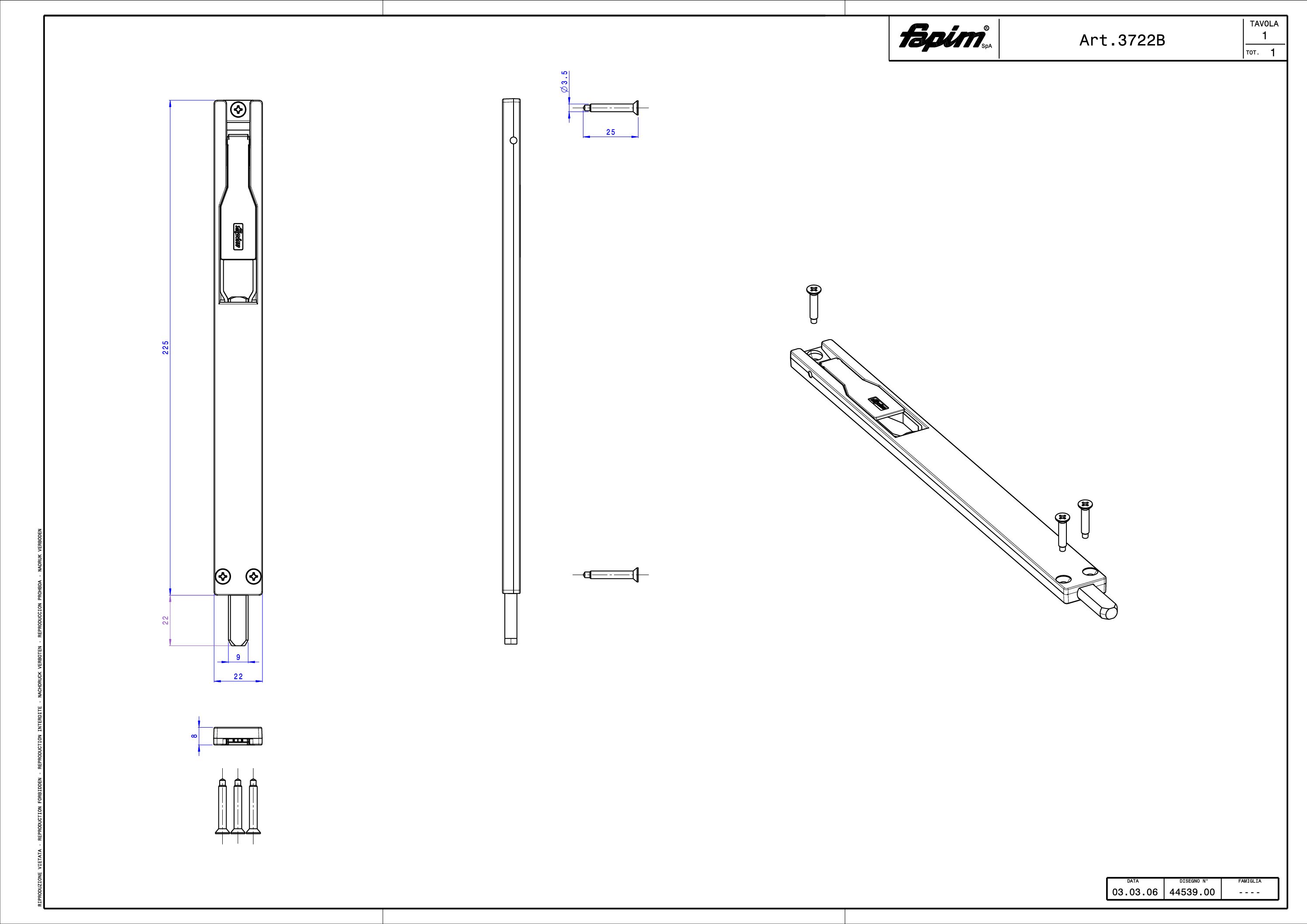 Zăvor ușă foaia 2, L 220mm, culoare argintiu, Fapim 3722B